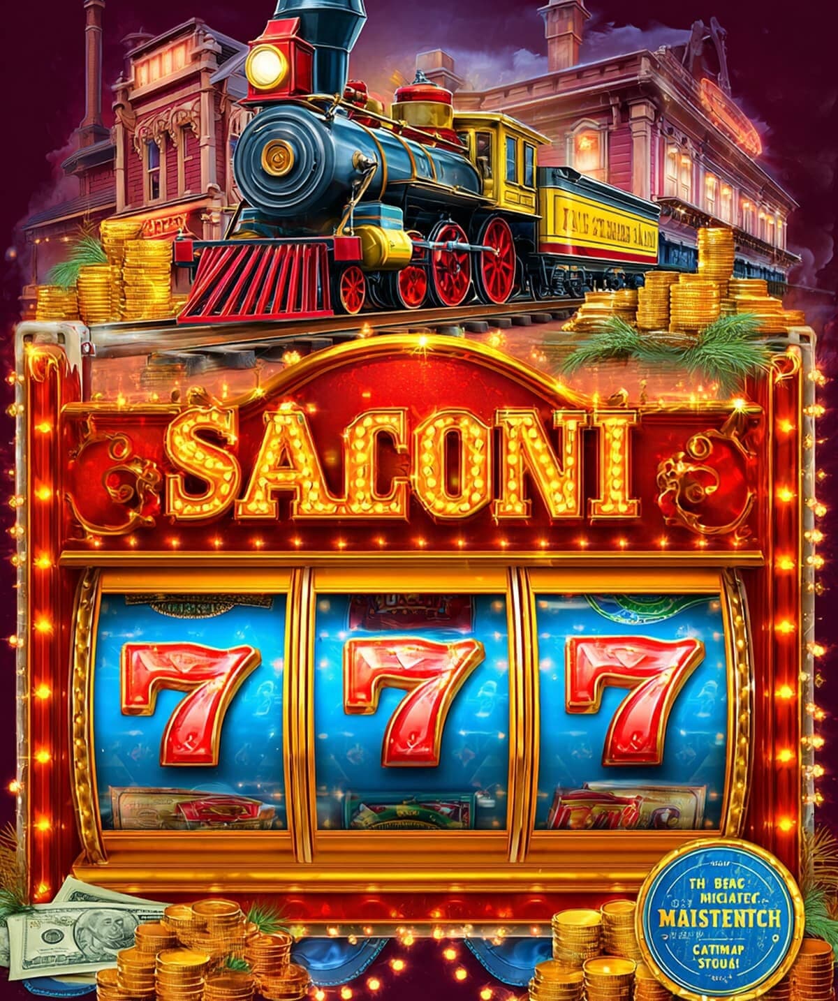 The Saloon Streak Slot Machine combines western charm with the excitement of classic slots. Set in an old-town saloon scene, this machine features a detailed steam locomotive and glowing red 7s on the reels, signaling jackpot wins. With stacks of coins and rustic decor, it’s perfect for fans of frontier-style thrills and vintage gambling aesthetics. Bring the wild west to your game collection.